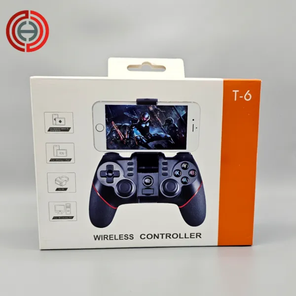 والأكثر من ذلك هو أنه مزود بتطبيق/apk، ويمكن للمستخدمين ضبط تعيين زر برنامج الألعاب على زر وحدة التحكم، مما يحسن توافق اللعبة وتجربة الألعاب بشكل كبير. يحتوي T6 على تقنية Bt و تكنلوجيا لاسلكية 2.4 GHZ ، مجهزة أيضًا ببطارية ليثيوم أيون قابلة لإعادة الشحن، وهي متوافقة تمامًا مع أجهزة Android وIOS والكمبيوتر وأجهزة الألعاب والتلفزيون الذكي والأجهزة الذكية .. إلخ